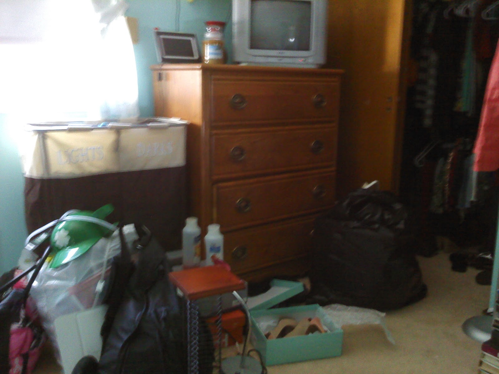 No, we’re not candidates for the next episode of Hoarders. (Really that show is disgusting. Don’t watch it if you’re planning on eating that day.) The culprit is one tiny girl who has moved home after four years away at college.