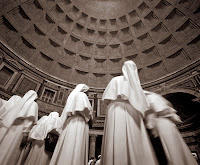 But there we sat, hands folded on the edge of the desk in front of us, struck mute by the sheer force of the tiny, yet rotund figure standing sternly before us. Sister Marita Roberts, hair hidden beneath her veil and body camouflaged by a dark blue habit covered by a round, white thing that looked like an adult sized bib, silently dared us to utter a sound.