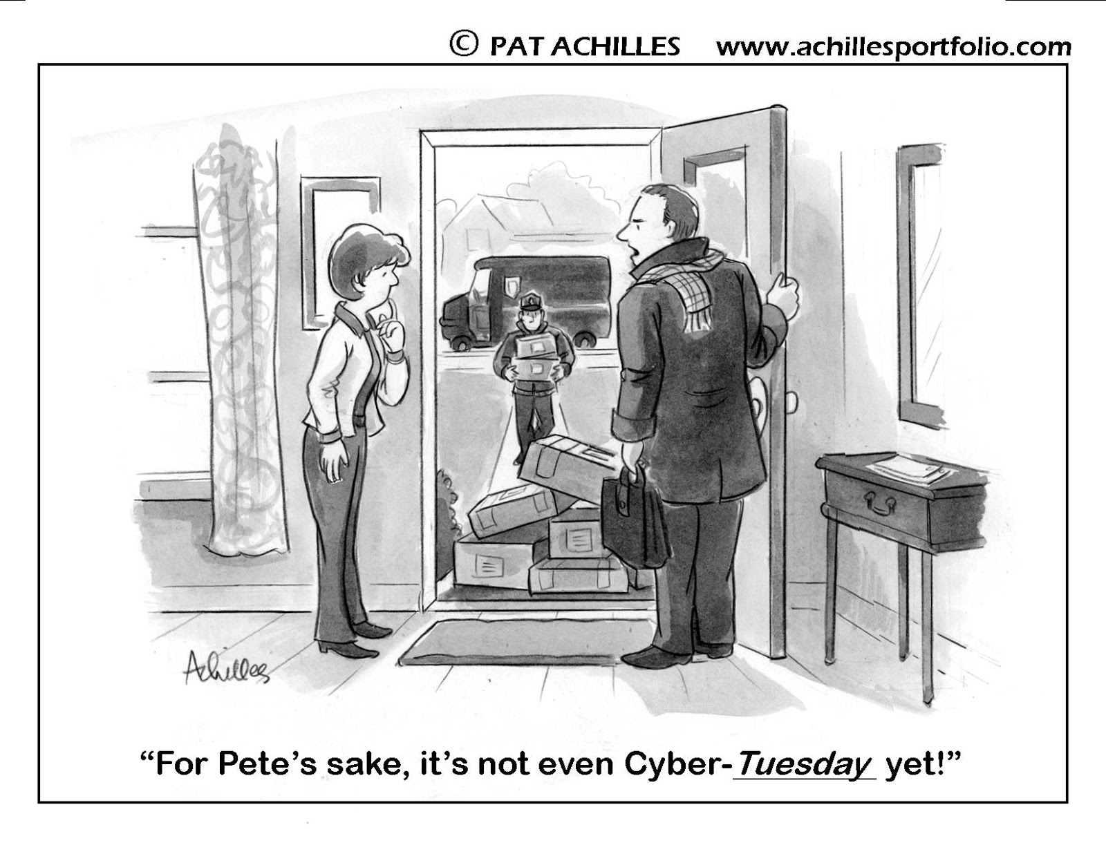 Laughing @ Middle Age, a Shopping Season Cartoon by Pat Achilles
