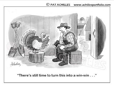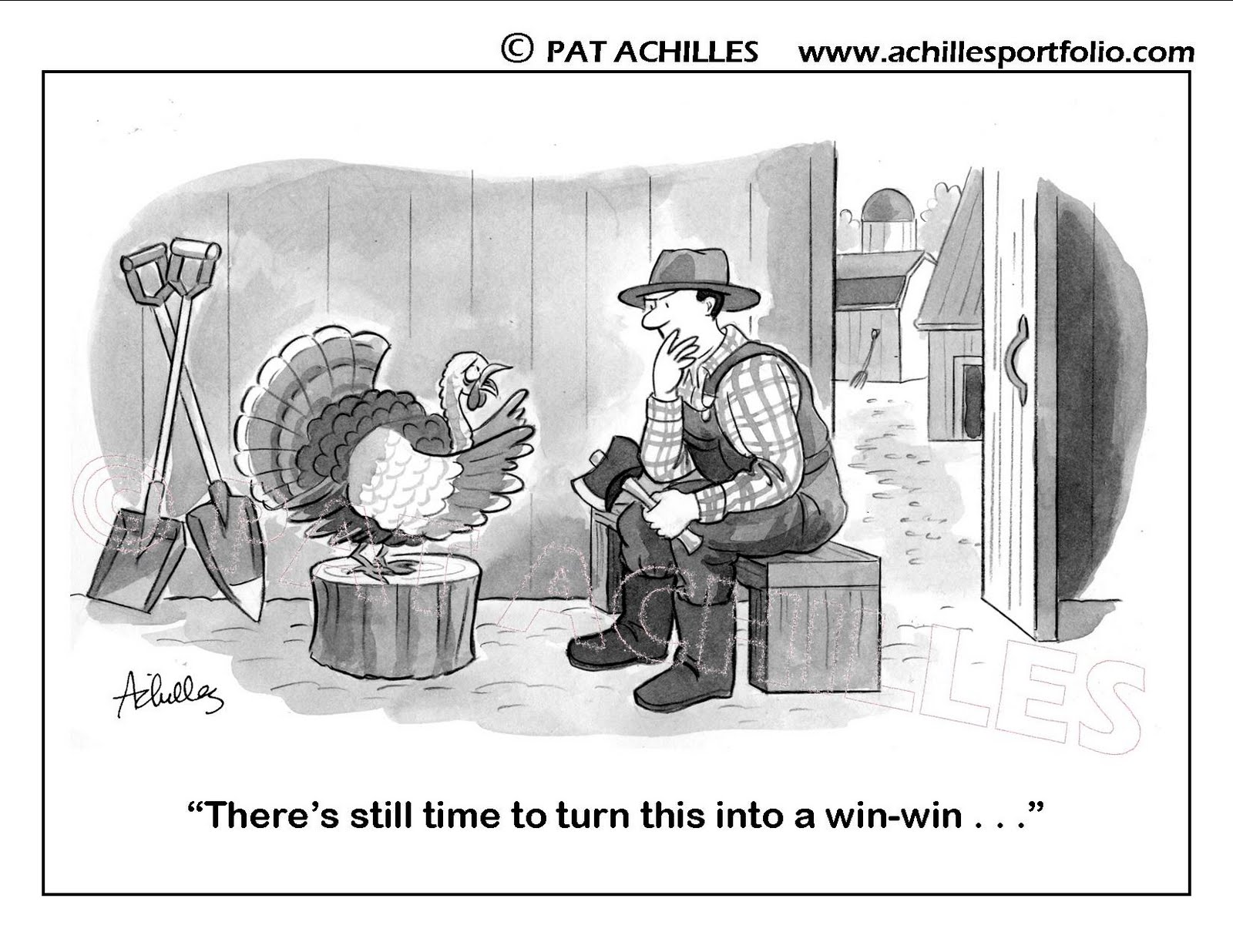 Laughing @ Middle Age, a Thanksgiving Cartoon by Pat Achilles