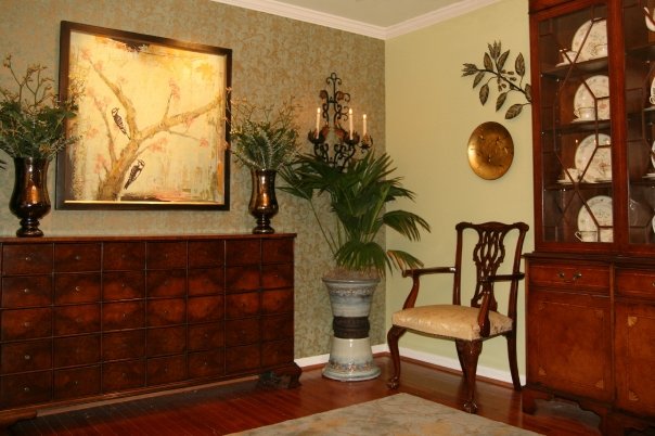 Aside from the variety of finishes and art available, are the new ways we designers choose to apply them in clients’ homes. Often I decide to place this fantastic focal element to only one wall, creating an outstanding focal point that coordinates with paint colors on remaining surfaces. Maybe the fireplace surround gets its own dose of excitement, or the inside backs of the bookcases might be just the spot for a pop of color. Sometimes I’ll insert wallpaper into picture frame molding, creating pockets of pattern and interest within the walls or below the chair-rail. Perhaps we’ll hang just 3 strips with a bit of space between each, creating an interesting vertical effect behind the sofa, or visually defining an over-sized wall. The ideas are limitless.