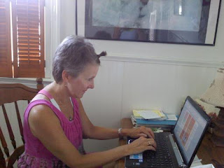 So…this is what I look like when I’m working. Classy, huh? The glamorous life of one who writes. Oh, and the Pebbles Flintstone hair-do is courtesy of my daughter, Megan, who thought it would be funny to put one of her hair ties in my hair. She’s 22. ‘Nuf said.