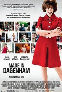 This was brought to mind yesterday, while watching Made in Dagenham, a jewel of an arts film from the BBC and UK Film Council. Set in 1968, the movie chronicles the true story of a group of female machinists(sewing seat covers) at a Ford plant in Dagenham, England. As counterparts to their male machinist union members, the women received about 20 cents on every male dollar. Thanks to the encouragement of union rep and sympathizer (whose mother struggled to support her family on meager wages), one woman bravely organized and led her band of female seamstresses and their fight for equal pay to Ford’s top management levels and even the Prime Minister’s Office.